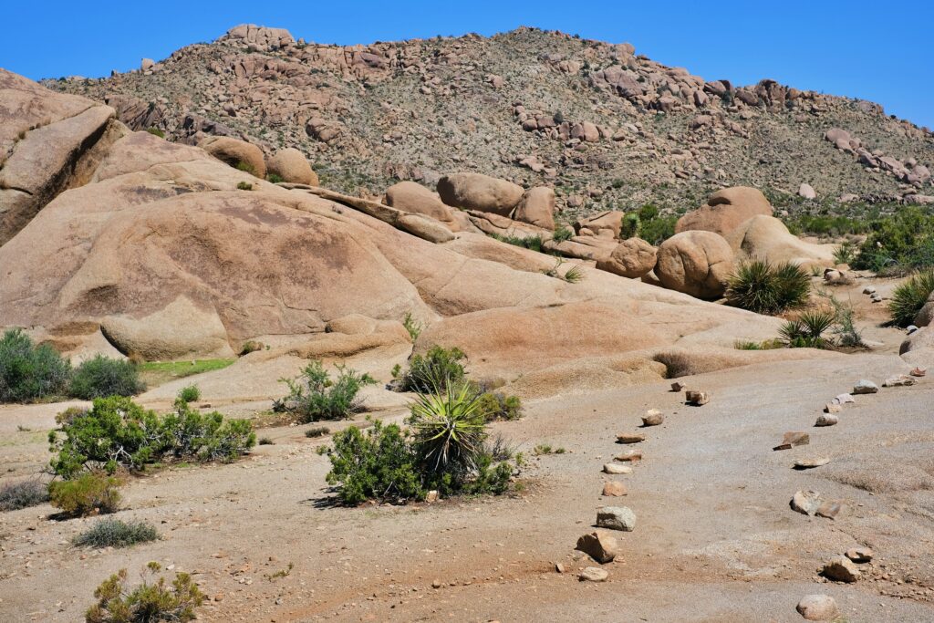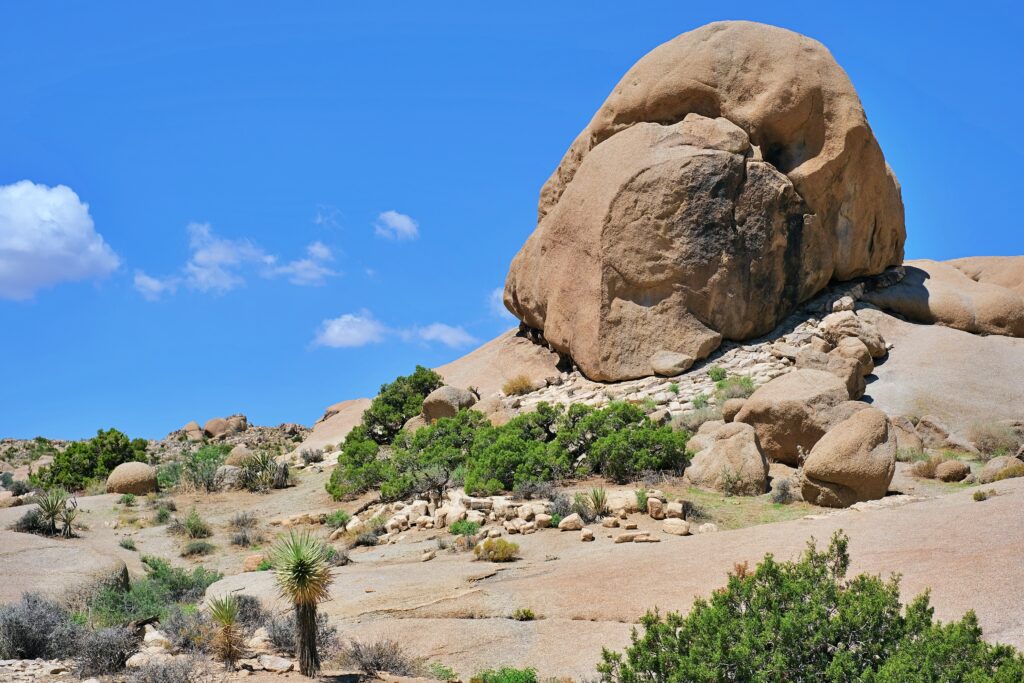 Along the way, stop at Skull Rock. This rock formation is located along the main east-west road in the park and is a popular stop for park visitors. The parking lot is directly across from the rock. If you want to stretch your legs, you can walk the 1.7 km long nature trail. And how did this rock form? Raindrops collected in small depressions and began to erode the granite. As the rock eroded, more water accumulated in it. This led to further erosion, until over time two hollowed-out eye sockets formed and the rock began to resemble a skull.