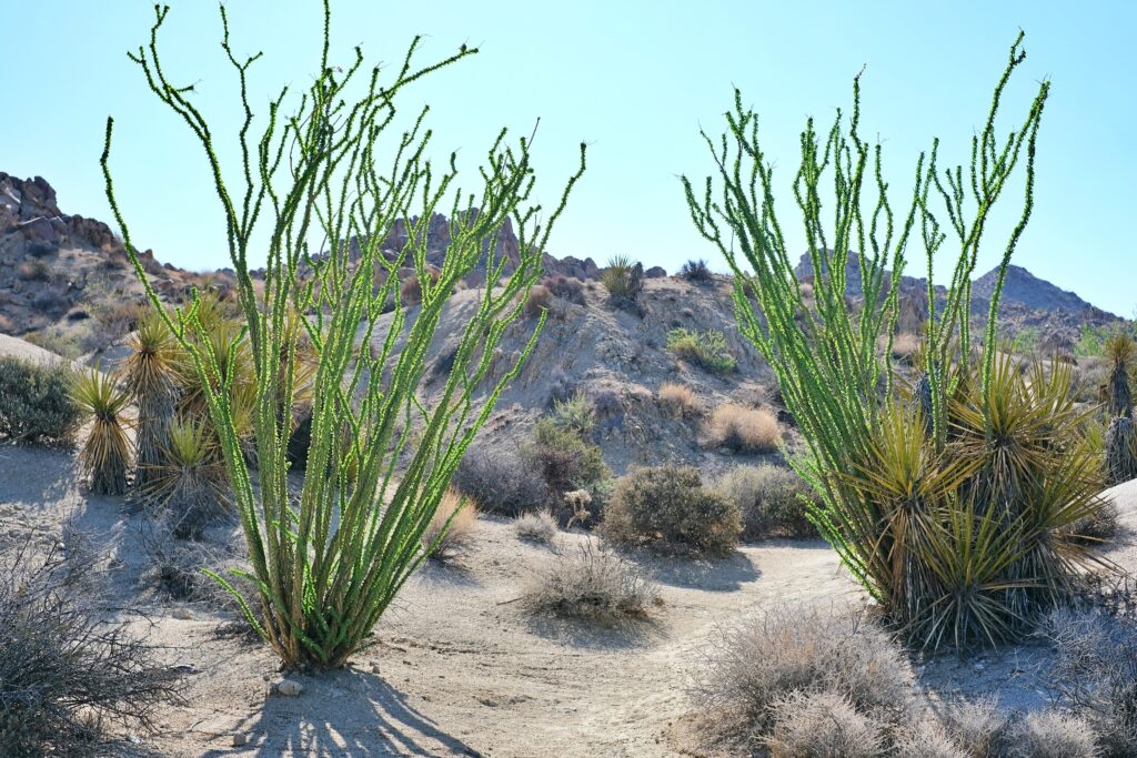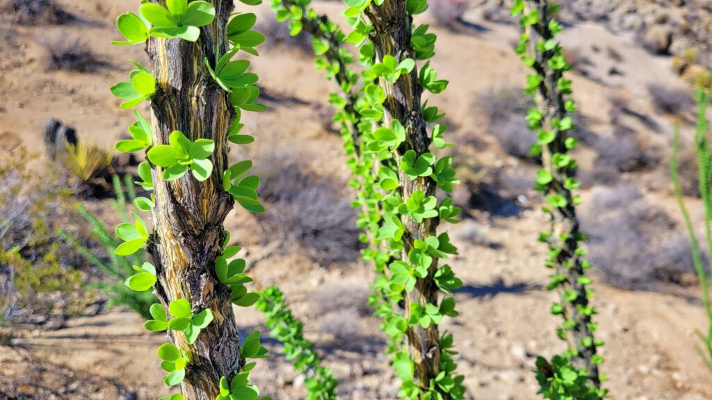 Ocotillo, smoke tree, and jojoba are some of the classic Colorado desert plants you will see on this hike.
