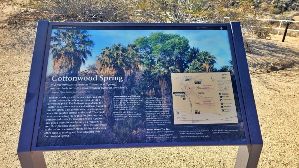 From Palm Springs: It’s about an hour to the entrance to Oasis or Cottonwood Spring. Again, I would recommend going through one entrance in and out through the other. That’s what we did, though.